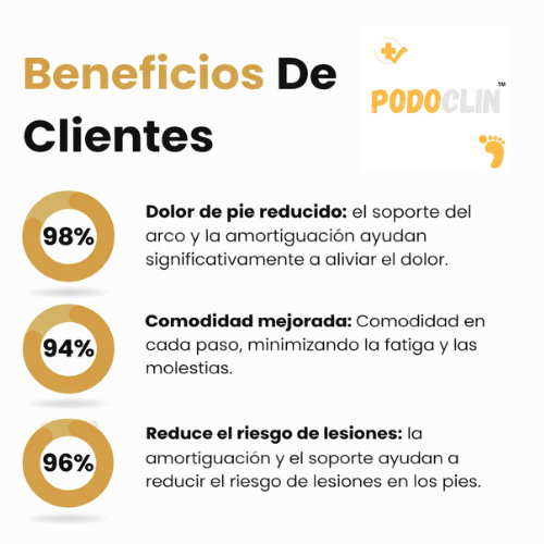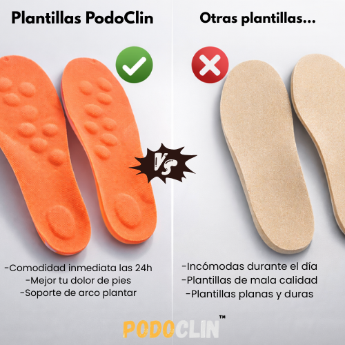 "Como podólogos, recomendamos las plantillas de PodoClin por su diseño que alivia el arco plantar, reduce la presión y mejora notablemente los síntomas del pie plano y la fascitis plantar"